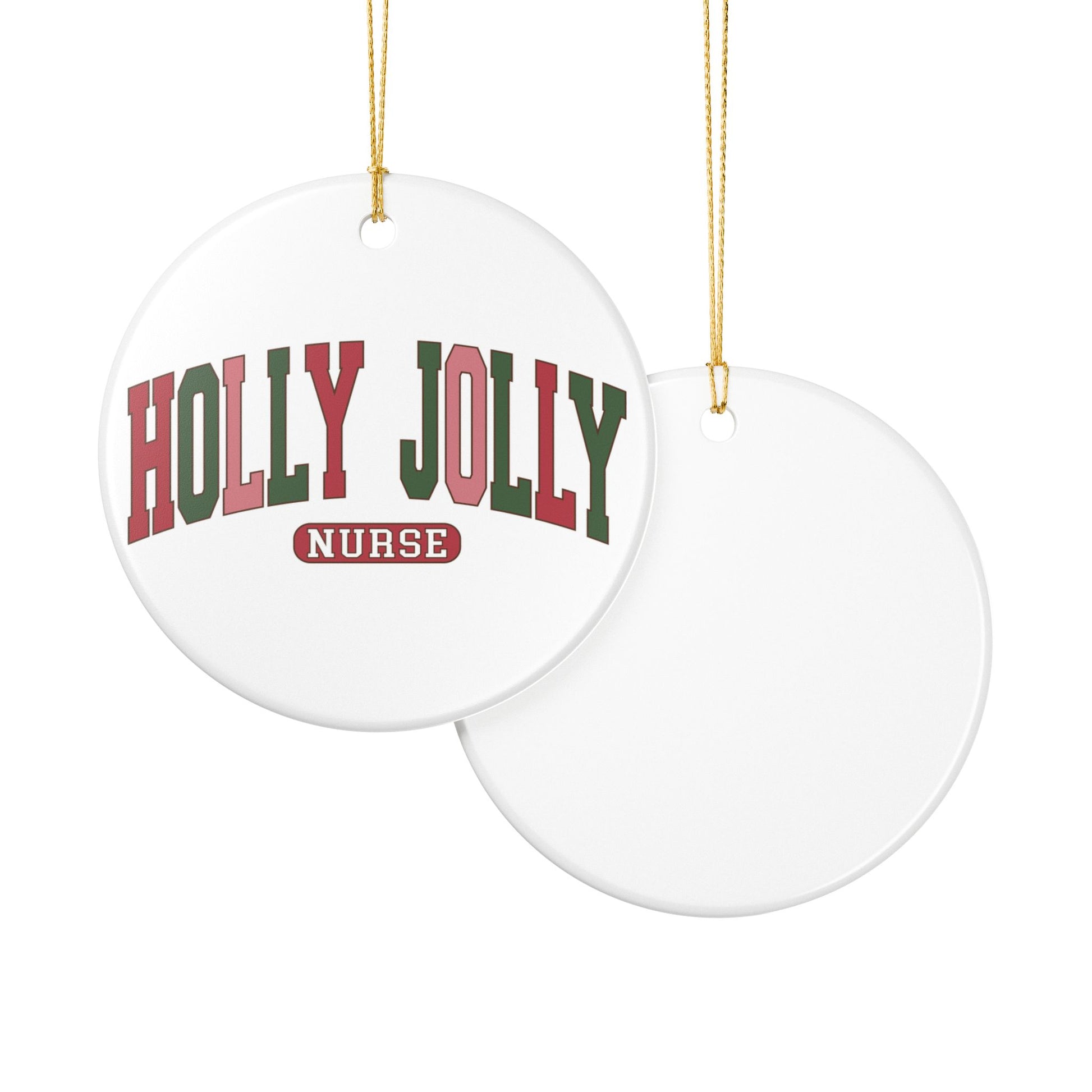Add a touch of elegance to your holiday decorations with this charming Ceramic Decoration Ornament. Crafted from 100% white ceramic, it offers a glossy finish that beautifully complements its matte print. Whether you're decorating your Christmas tree or enhancing your home for festive gatherings, this ornament brings warmth and joy into any space. Perfect for nurses or anyone who appreciates a little holiday cheer, it makes a delightful gift during the holiday season, perfect for Christmas and New Year celebrations. Hang it with the included golden string and let your home sparkle with festive spirit!