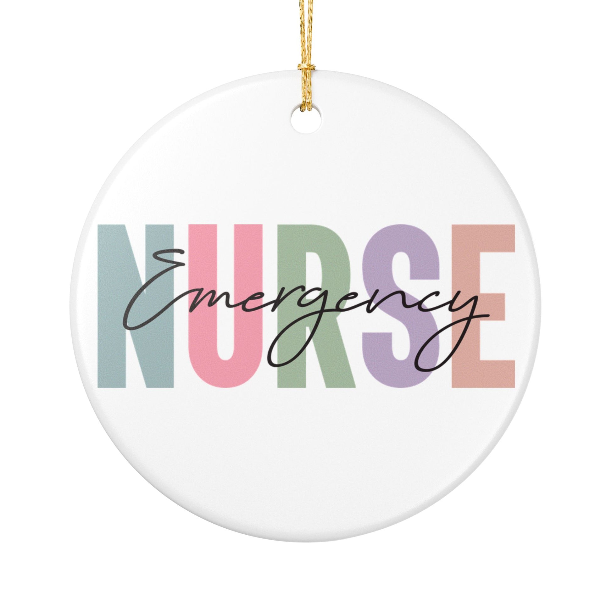 Add a touch of charm to your holiday decor with this delightful Ceramic Decoration Ornament. Made from 100% white ceramic, it exudes a glossy finish that beautifully contrasts with its matte print design. The ornament features the word "Nurse" in a vibrant and playful typography, making it an ideal gift for healthcare professionals. Whether you're hanging it on your Christmas tree, using it as a gift tag, or displaying it year-round, this ornament brings a joyful spirit to any space. Perfect for holidays like Christmas, Teacher Appreciation Week, or any special occasion to celebrate those in the nursing profession, this ornament resonates with heartfelt appreciation. It's the perfect gift for nurses, healthcare workers, or anyone who deserves a little recognition!