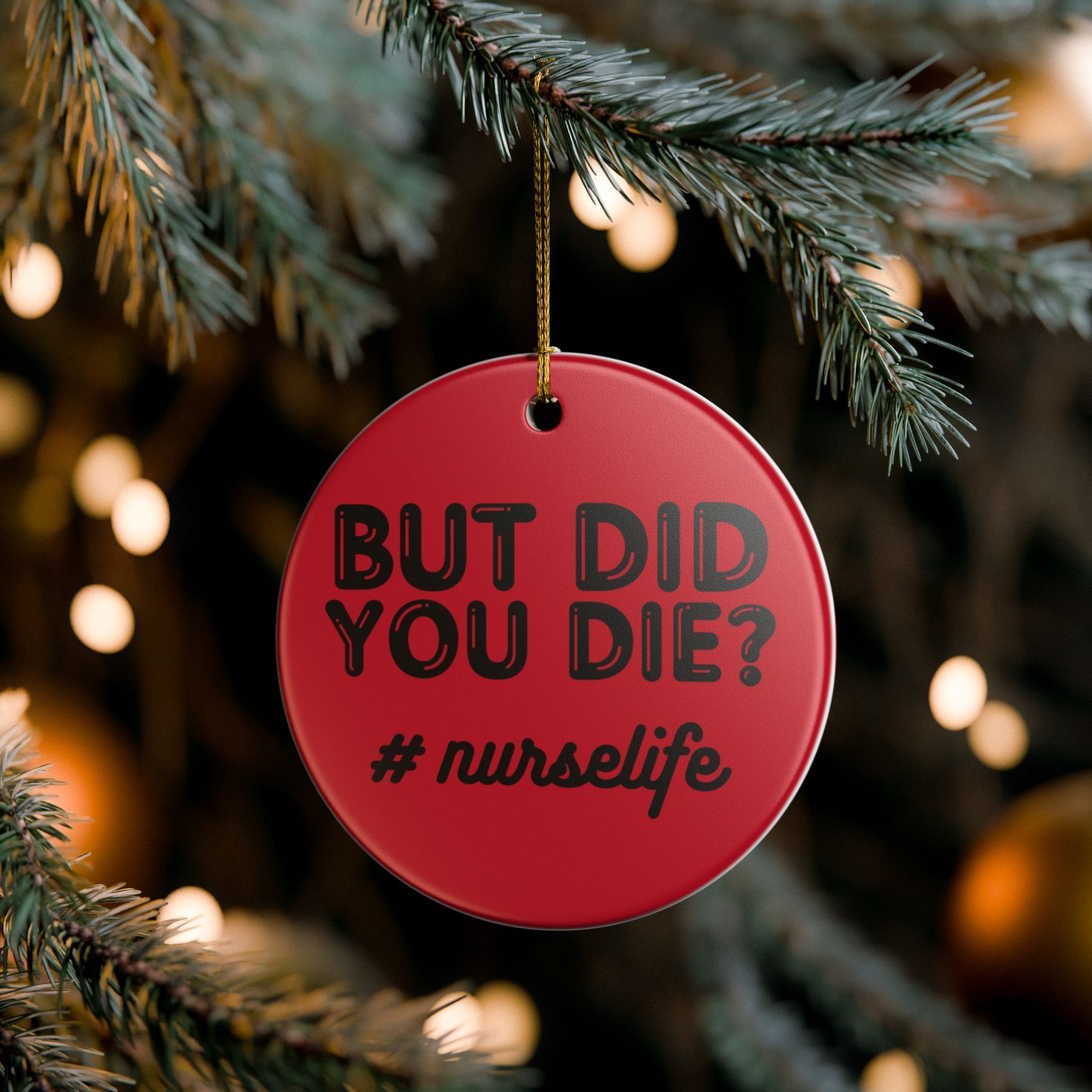 Add a touch of personality to your home or office with this eye-catching ceramic decoration ornament. Made from durable 100% white ceramic, this ornament is not only strong but also stylish with its glossy finish and matte print design. Perfect for hanging on a holiday tree or displaying year-round, it’s a delightful addition to any space. Ideal for nurses or anyone in the healthcare field, this ornament celebrates their unique lifestyle with a fun and humorous message. It makes a fantastic gift for holidays like Christmas, Nurses Week, or any occasion where you want to add a little cheer. With its included golden string, it’s ready to hang and brighten up any setting.